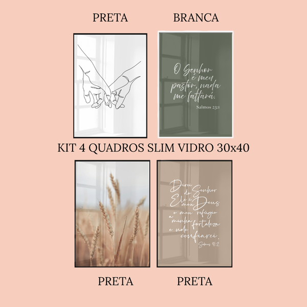 KIT 4 QUADROS EM VIDRO 30X40 MOLDURAS D