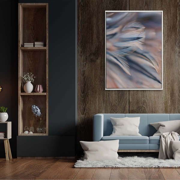 Também conhecida como filete de madeira ou flutuante, esse acabamento faz com que a tela transmita uma sensação de leveza e sofisticação. Por ser uma moldura discreta e que parece não se conectar ao seu quadro, ela proporciona maior destaque para a arte.