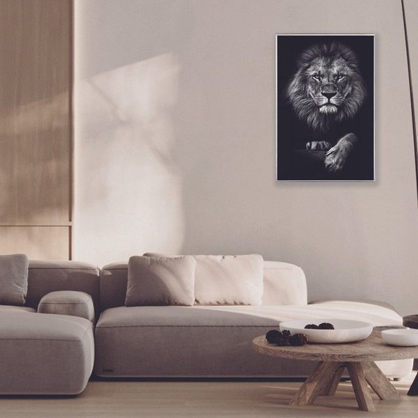 Quadro Decorativo Com Vidro Leão de Judá Preto e Branco